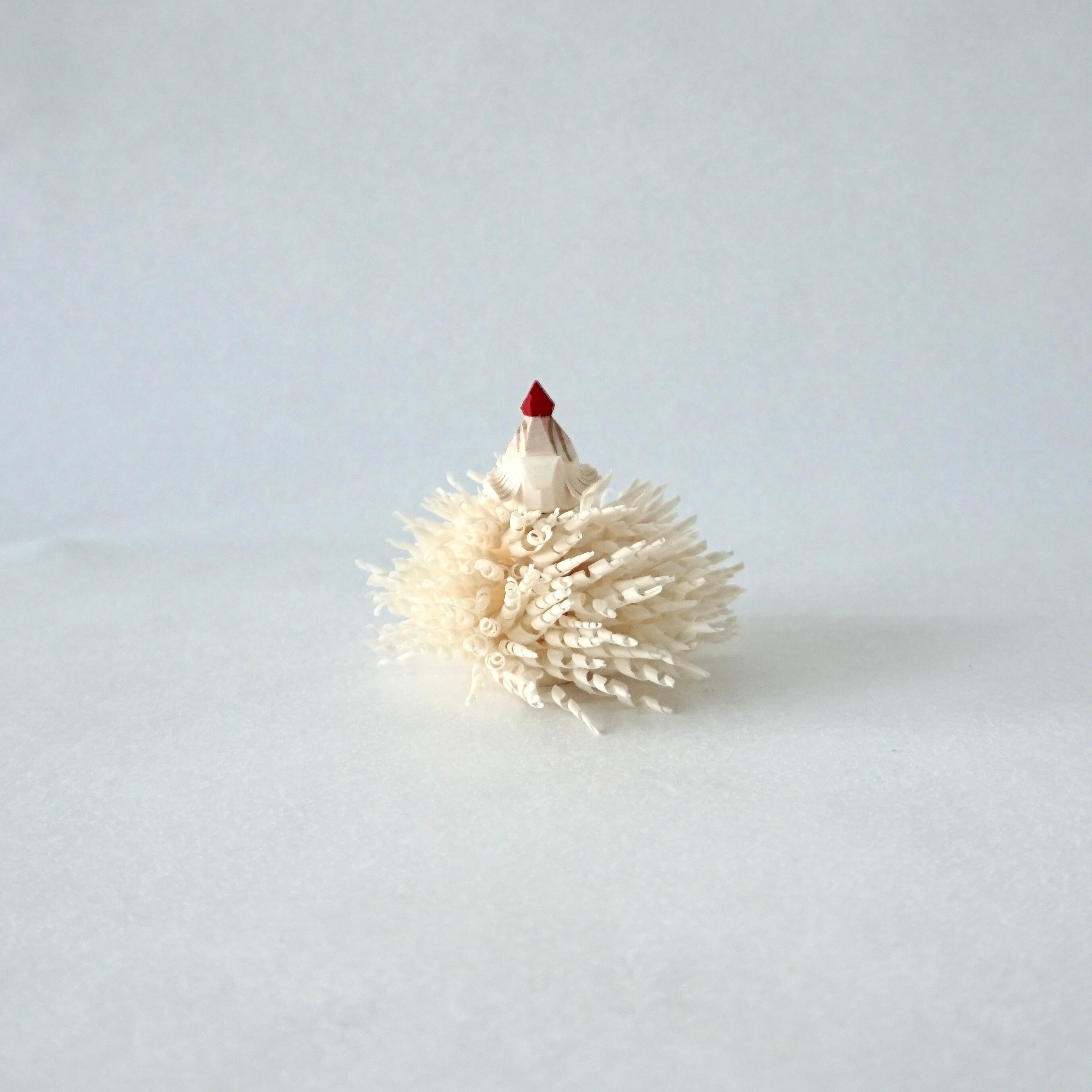 花の部分は「笹野花」の技法が使われており、チヂレと呼ばれる刃物でコシアブラの木から花弁を削り出しています。「笹野花」は雪深い米沢では仏壇に飾る生花が手に入らない為、菊の花に見立てて作ったことが始まりと言われています。