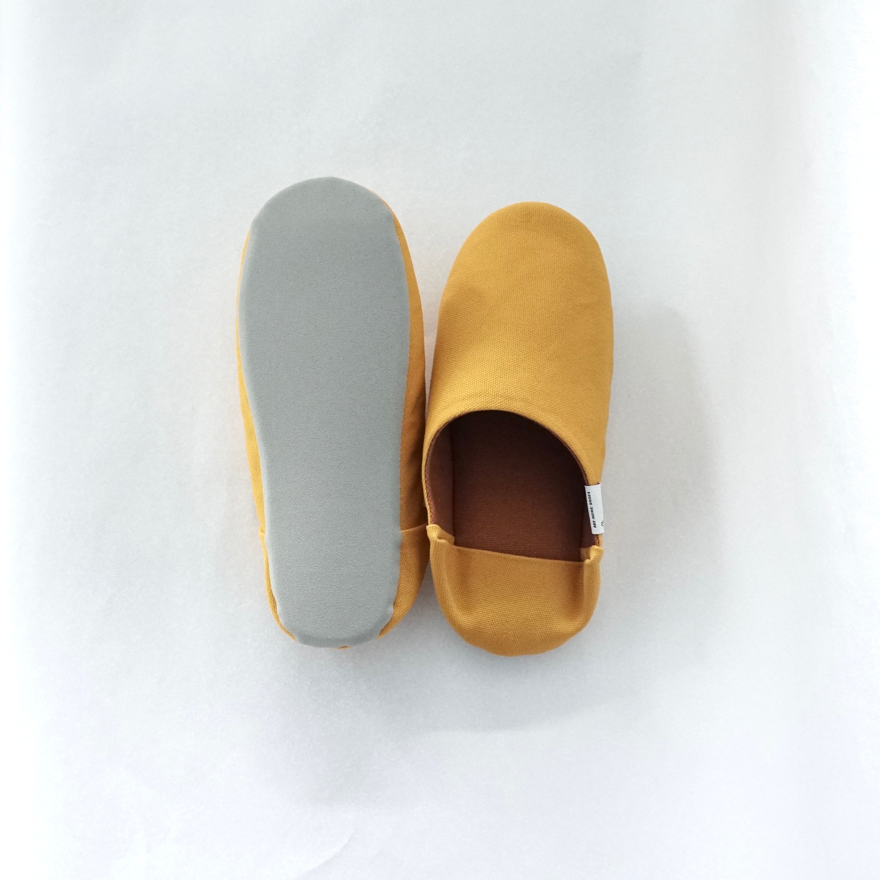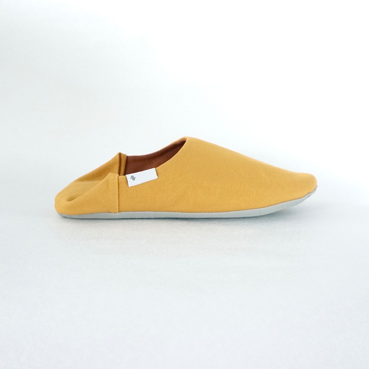 モロッコ発祥の履き物「バブーシュ」は、かかとを踏んでも起こしても履ける仕様が特徴。足の甲を包み込む絶妙な形状により、歩く際にかかとが浮きにくく、歩きやすい仕上りになっています。