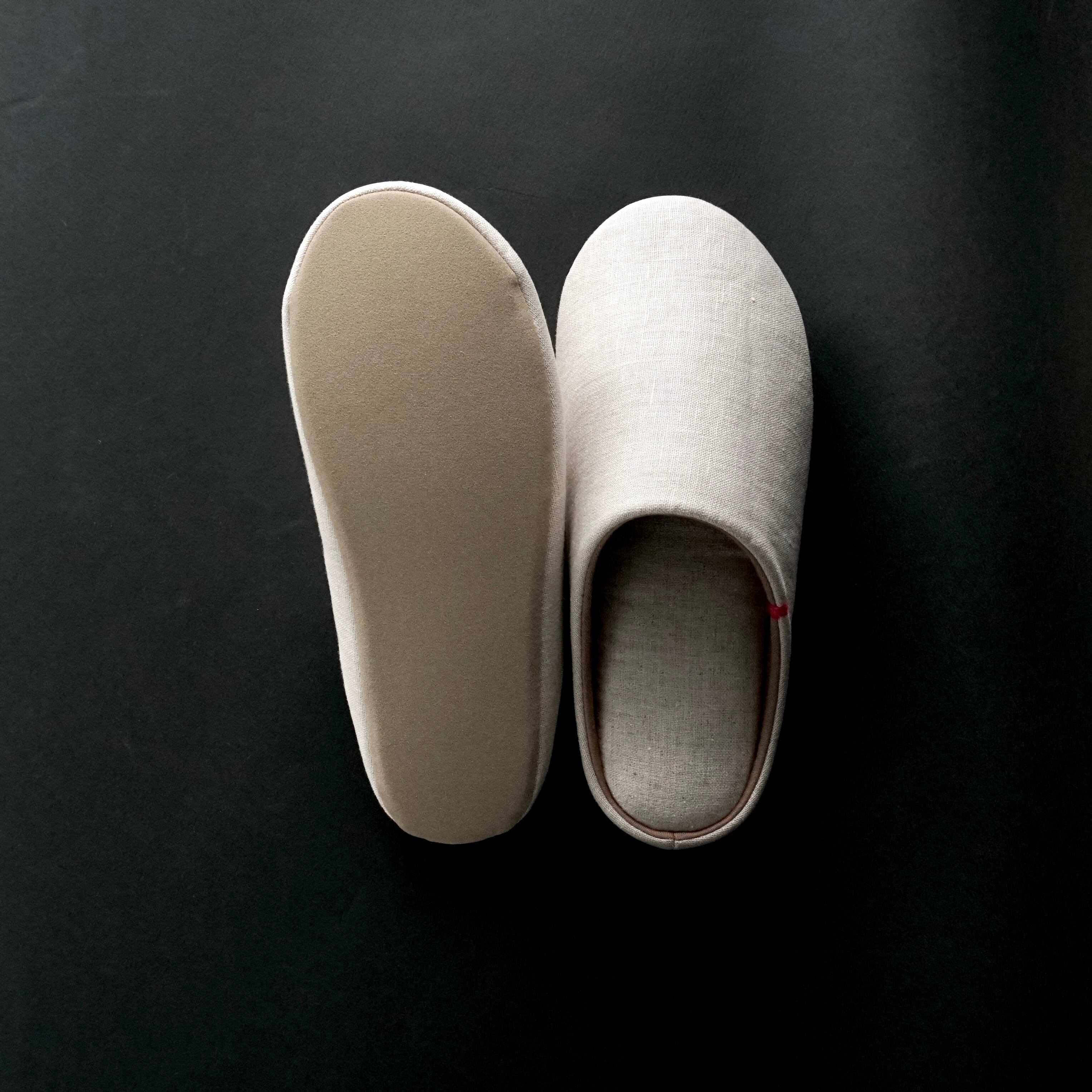 足をふわりと包み込むやさしい履き心地の「さふら」は、湿温調節に優れたリネンを使用し、中敷に耐久性のあるラミー混合生地を使用しています。