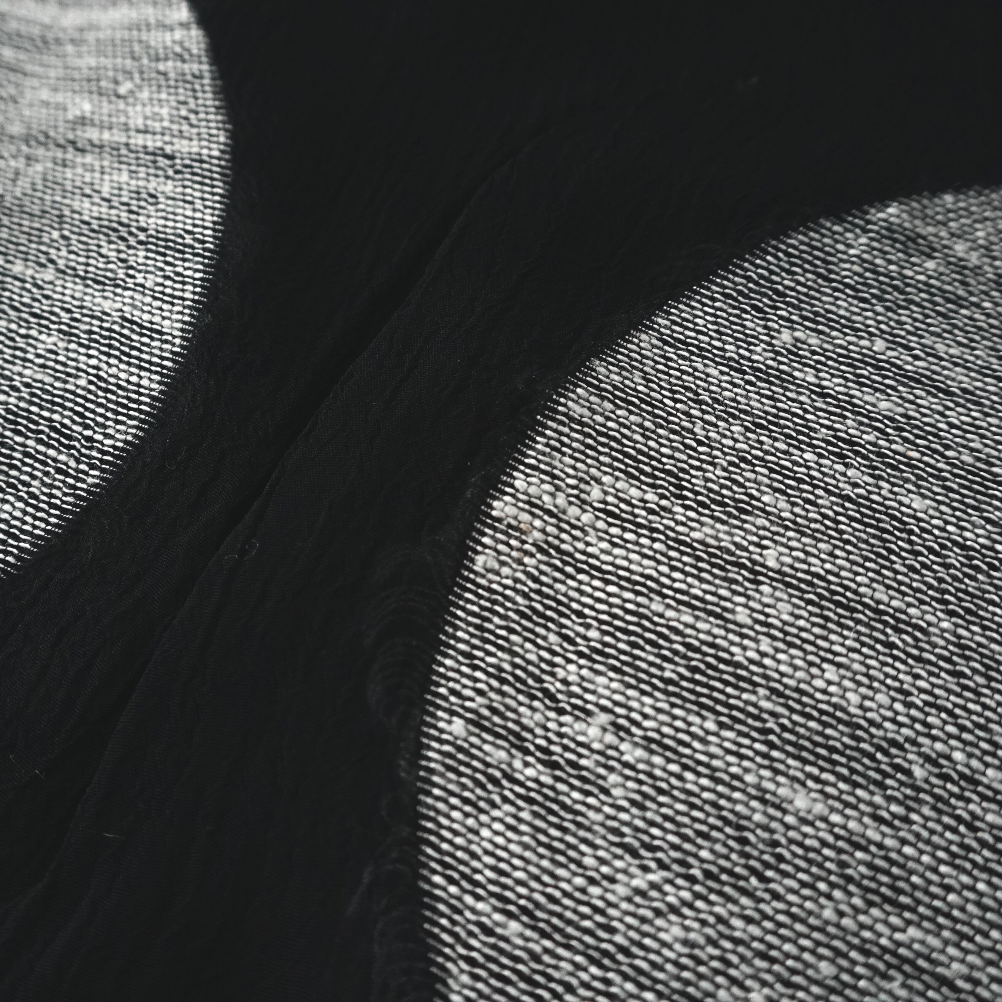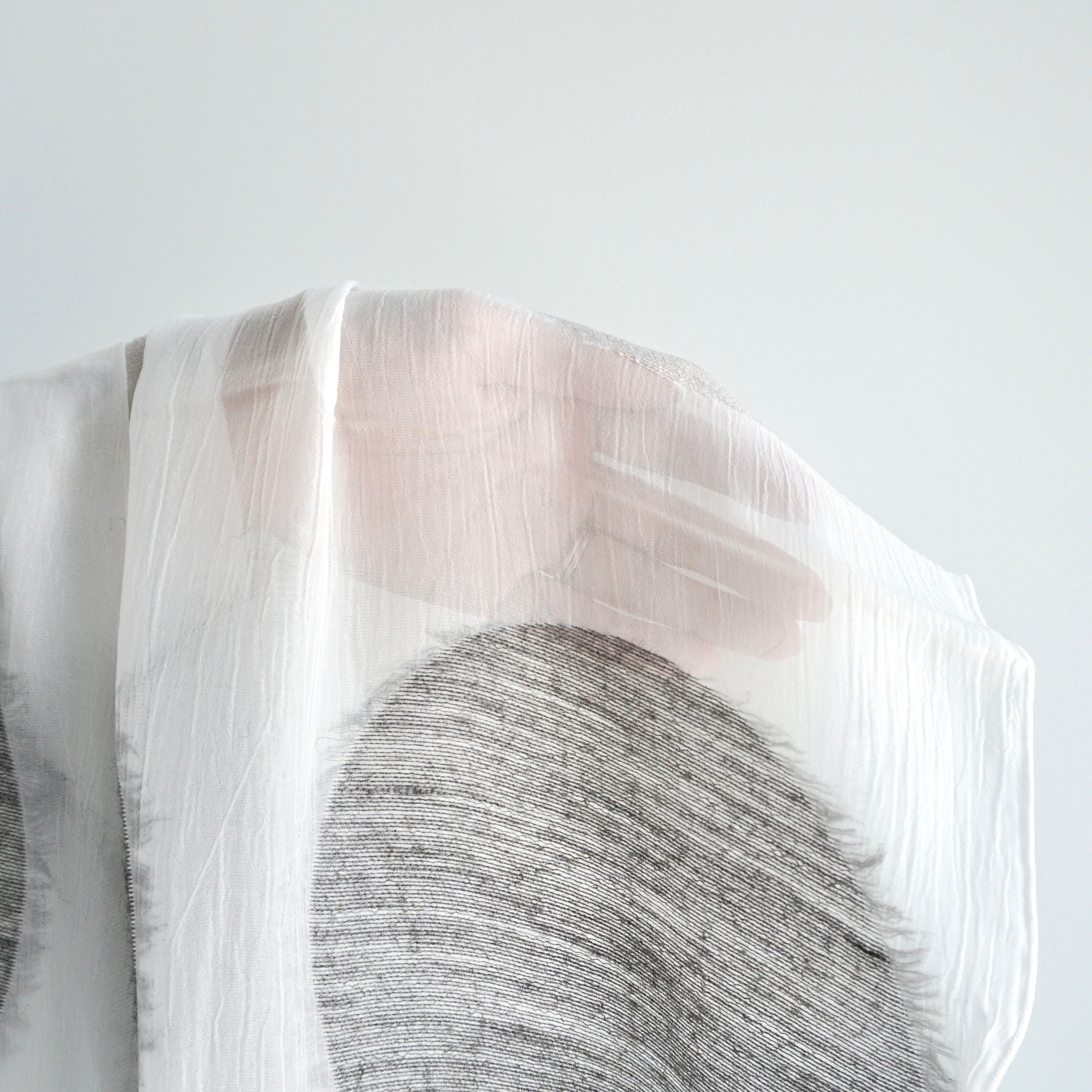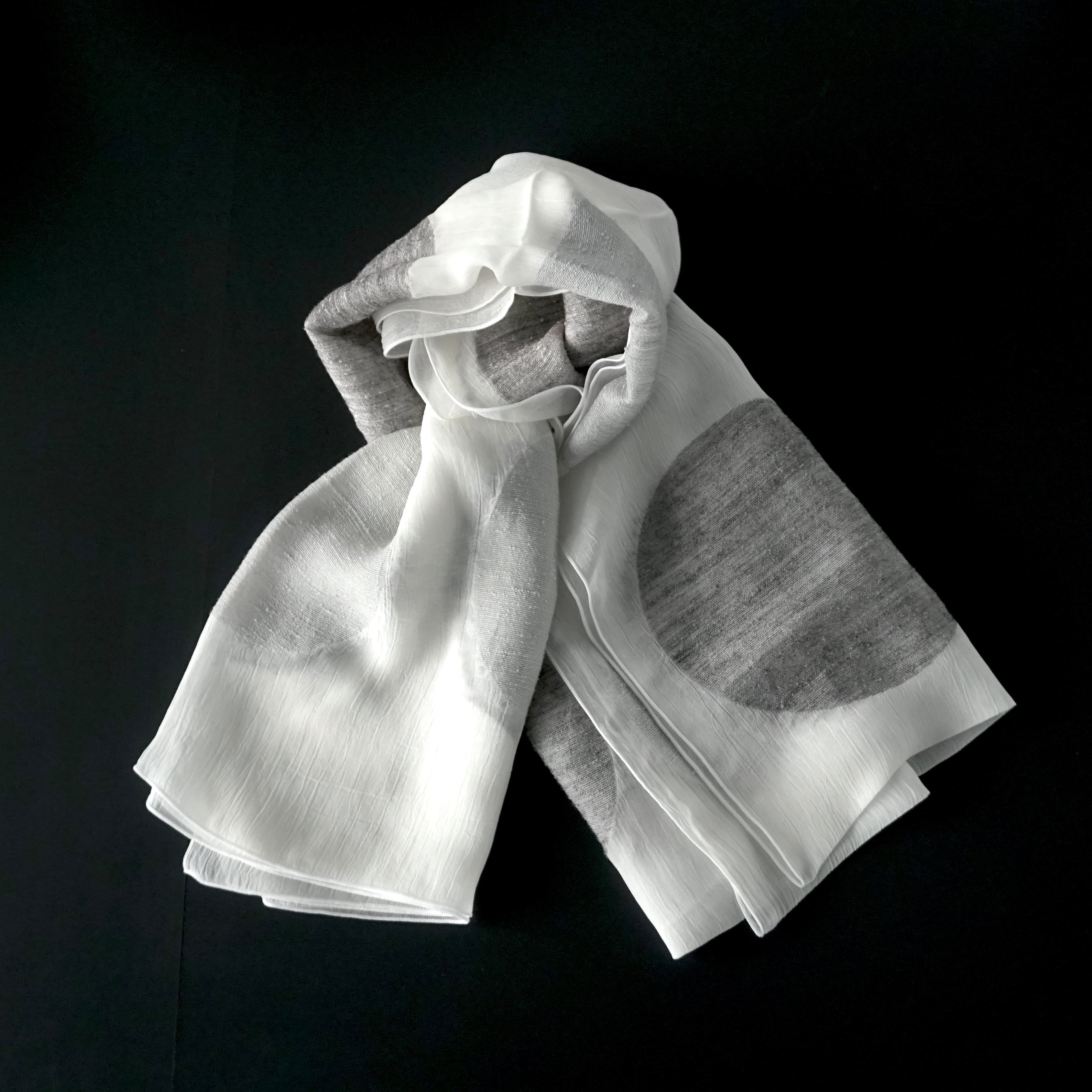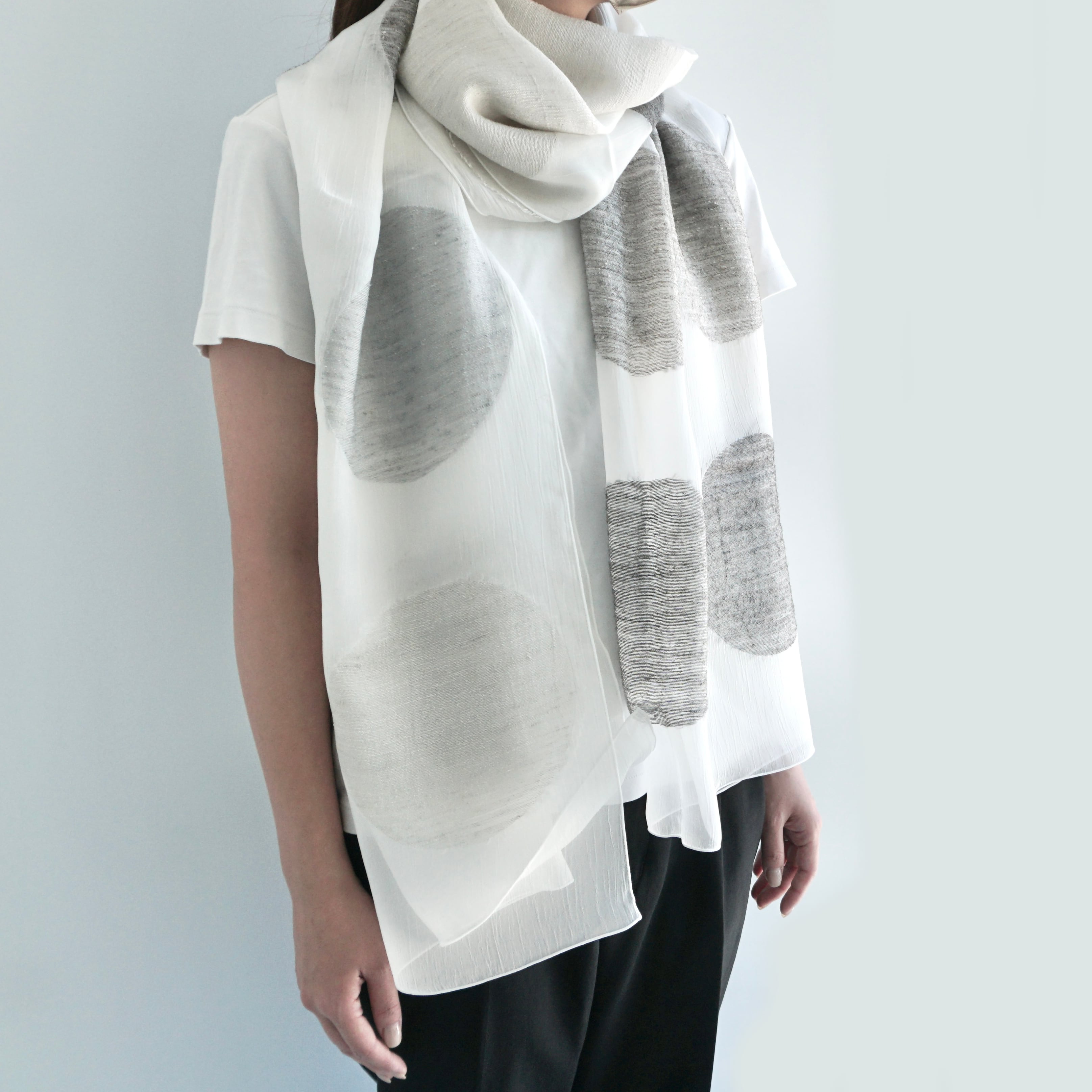 ウールや麻も織り込むことで、柔らかな風合いと透け感のバランスがよく、和装にもぴったり。大判なのでショールとしてもお使いいただけます。