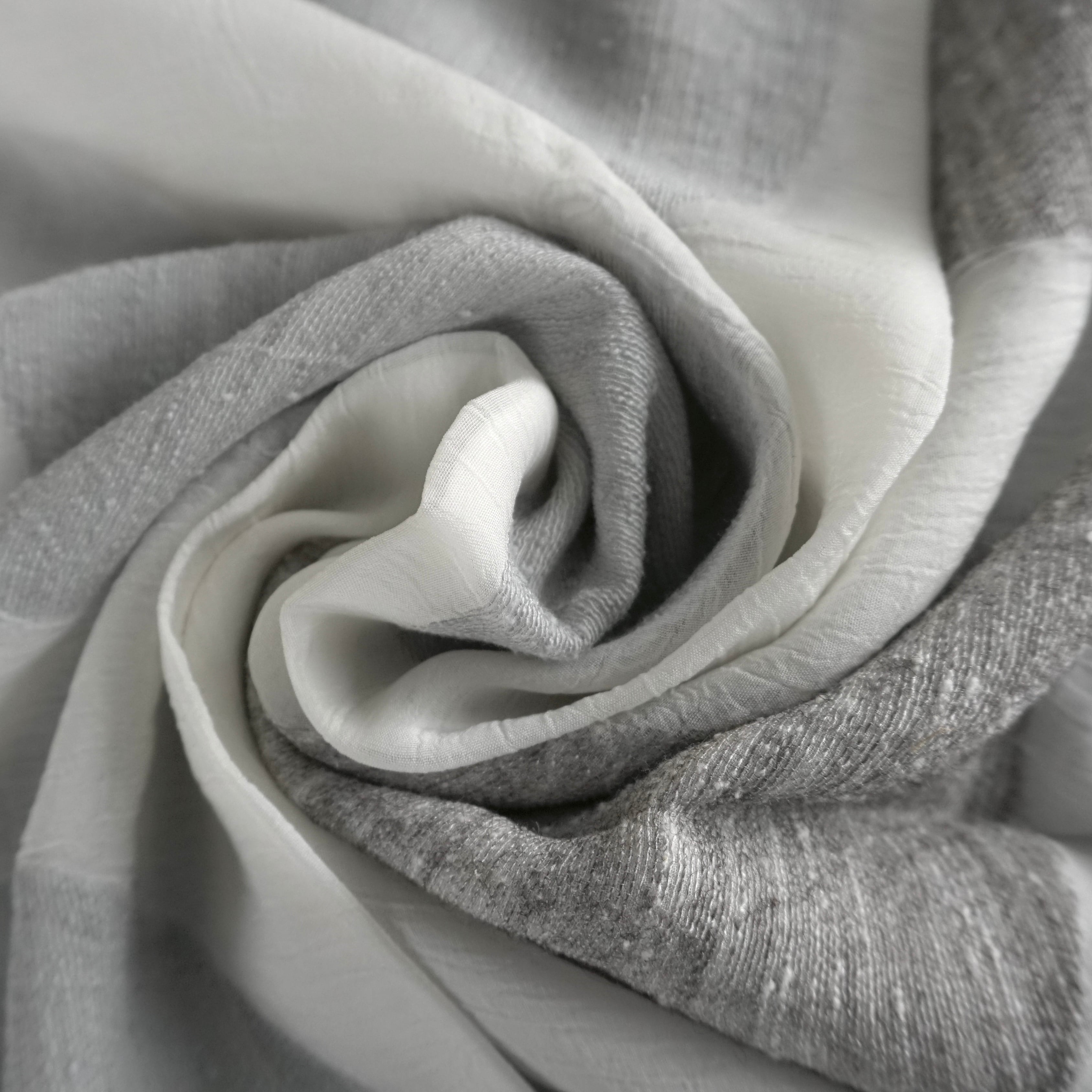 従来、きびそは不均一な太さで硬く、織り機での織物には不向きとされてきました。この素材を活用し、抗菌性やUVカットといったシルクの機能を有しつつ、きびそならではの素朴な美しさを楽しめる新たなシルク製品が生まれました。