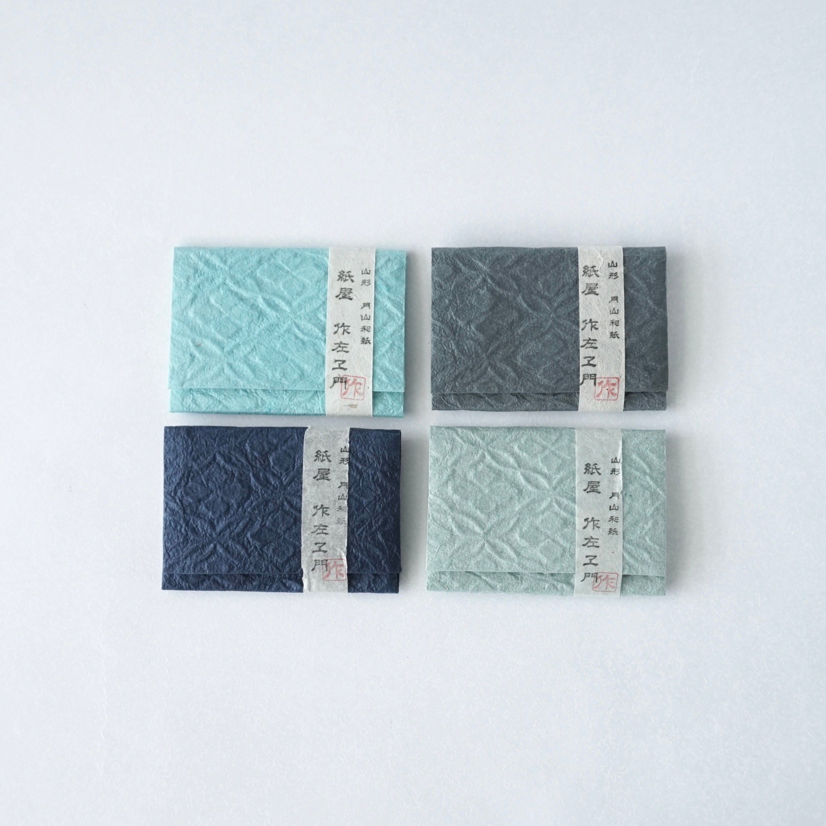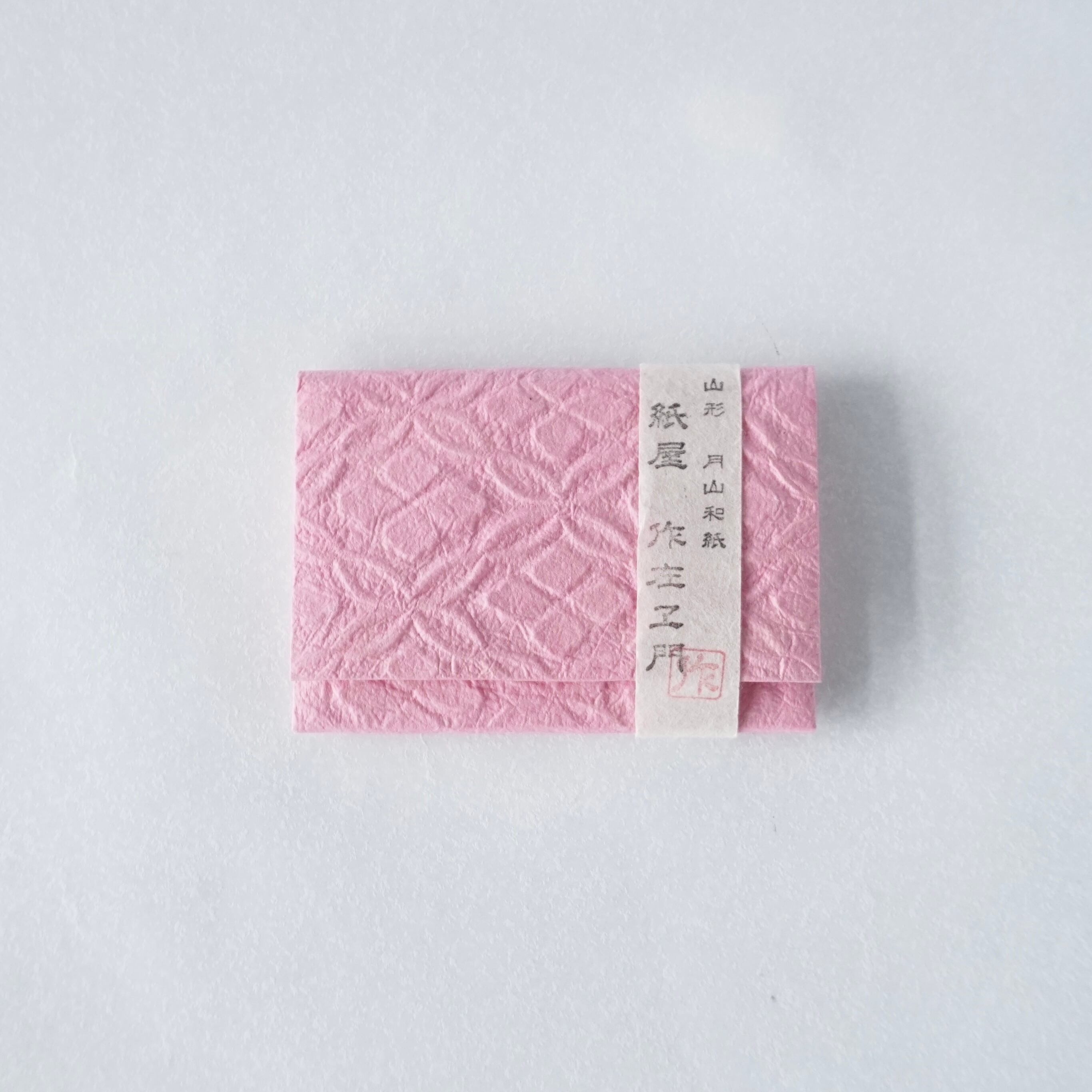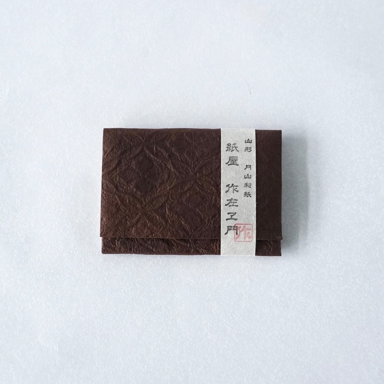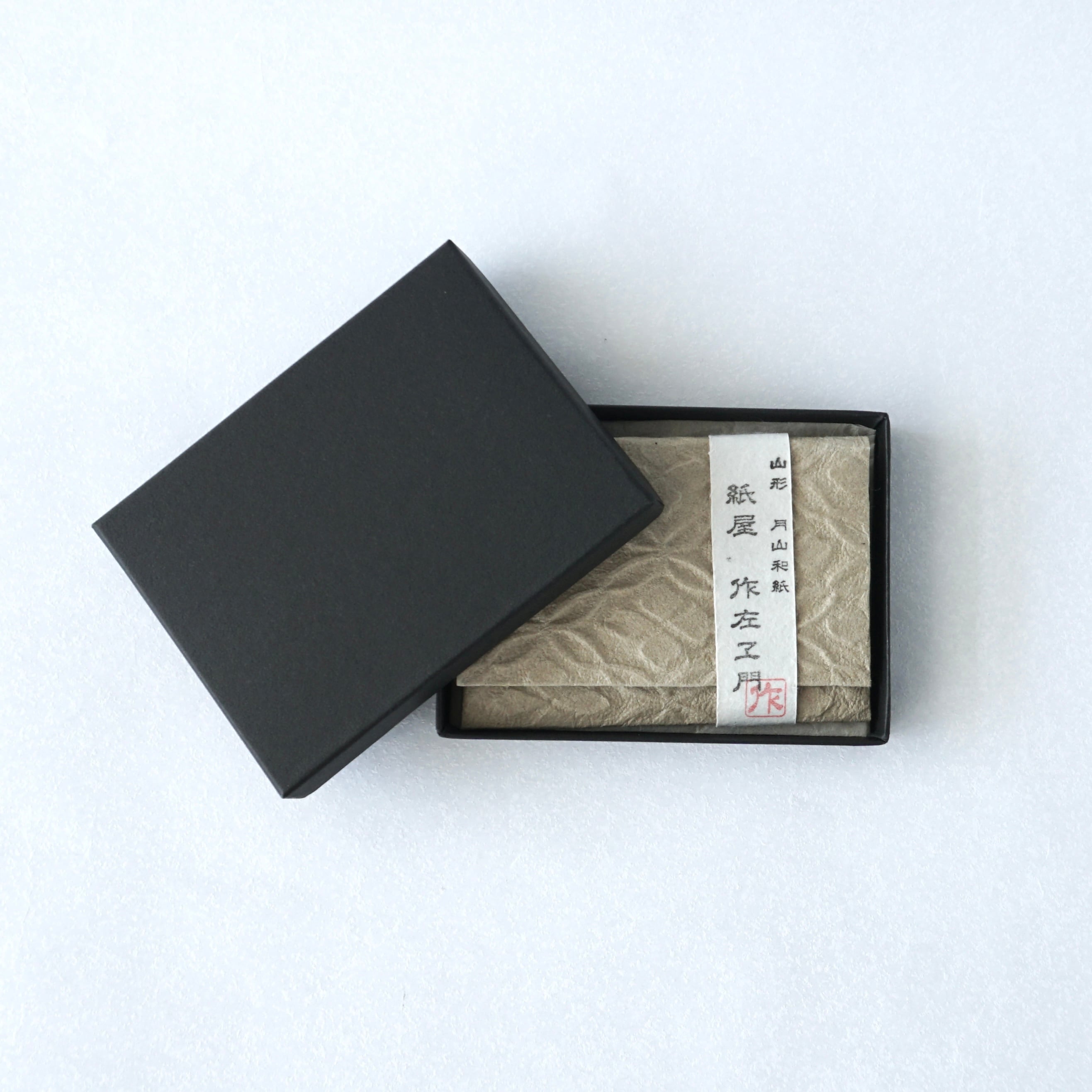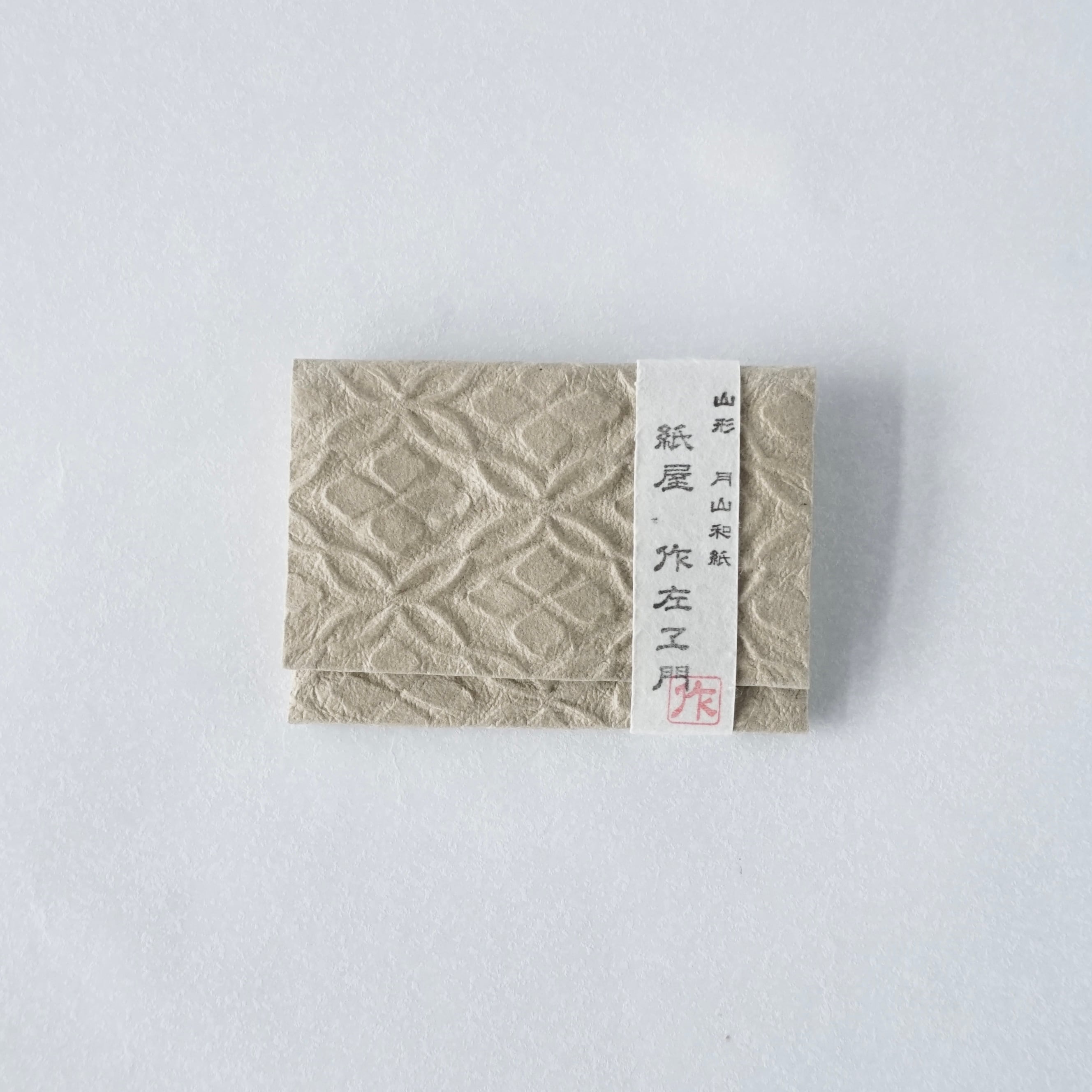 月山和紙の素朴な風合いが楽しめる、軽くて丈夫な名刺入れです。オリジナルの木型を使って型押しした模様と凹凸によって和紙の質感が際立ちます。