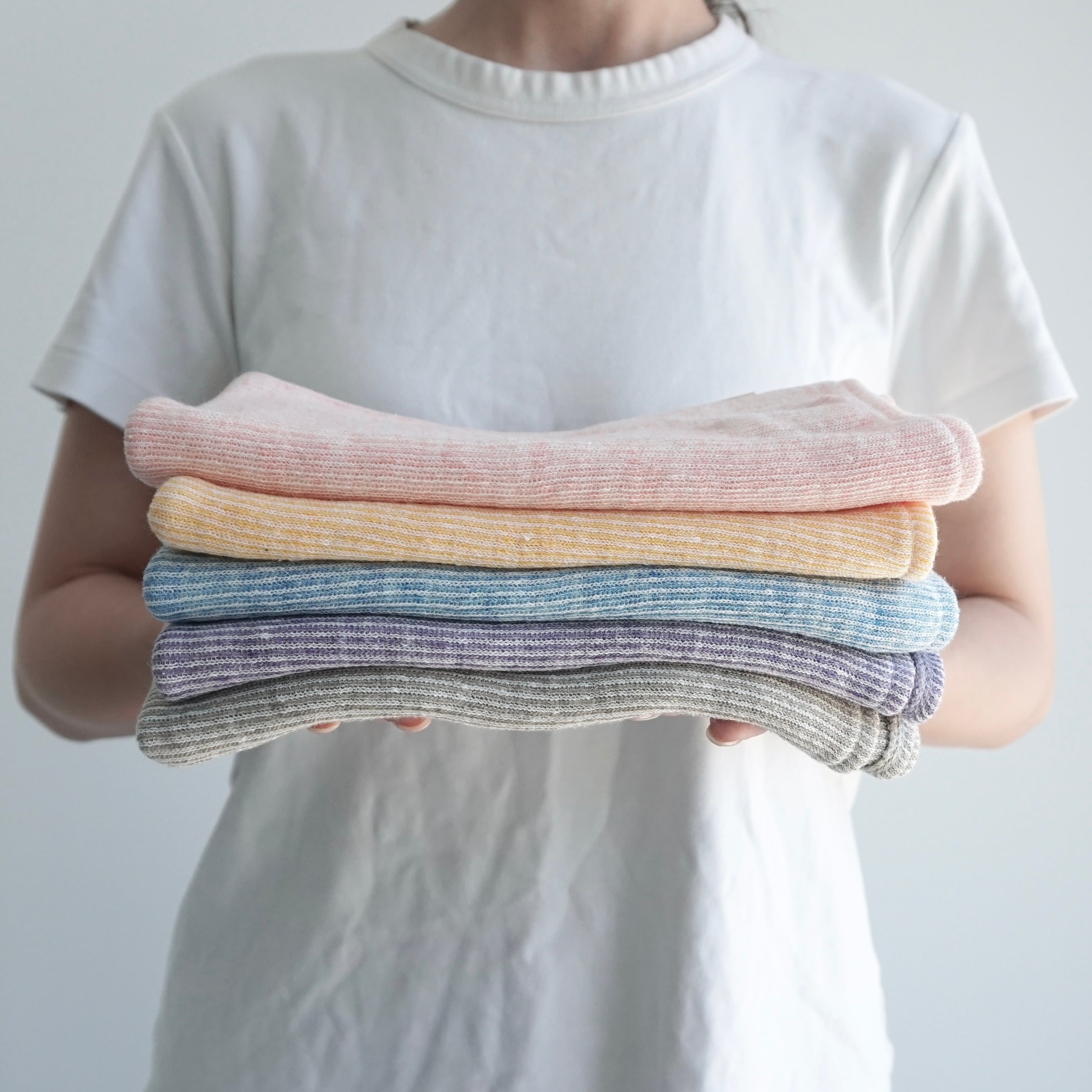 編地は洗濯するたびに少しずつ柔らかさがでてきます。爪やアクセサリー類などのひっかかりにご注意ください。