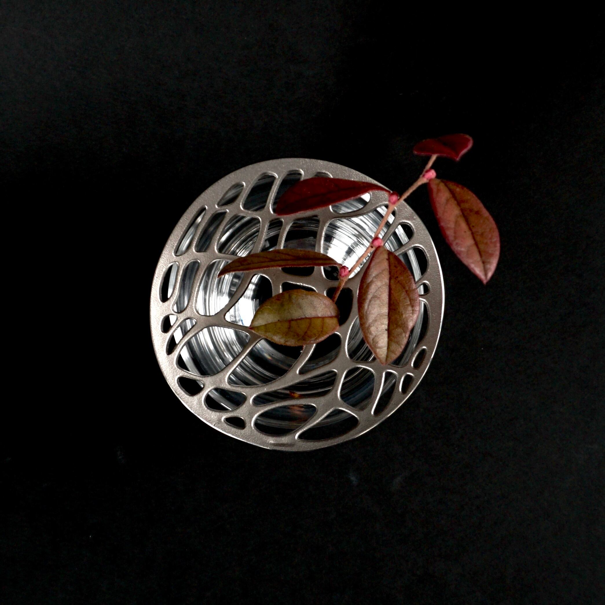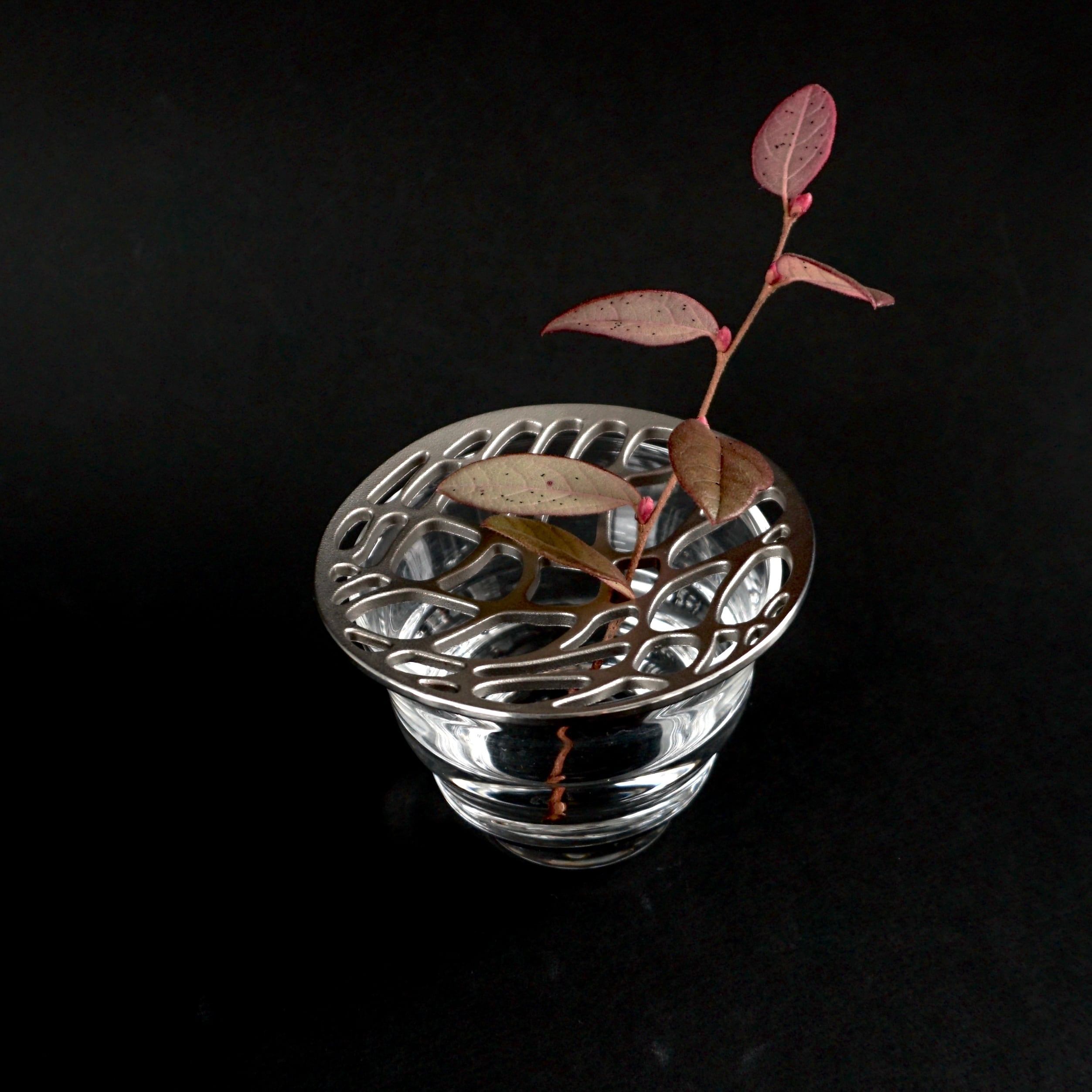 水を入れたグラスの上に置くと、支えとなって、生花やドライフラワー、草木様々なものを生けることができます。