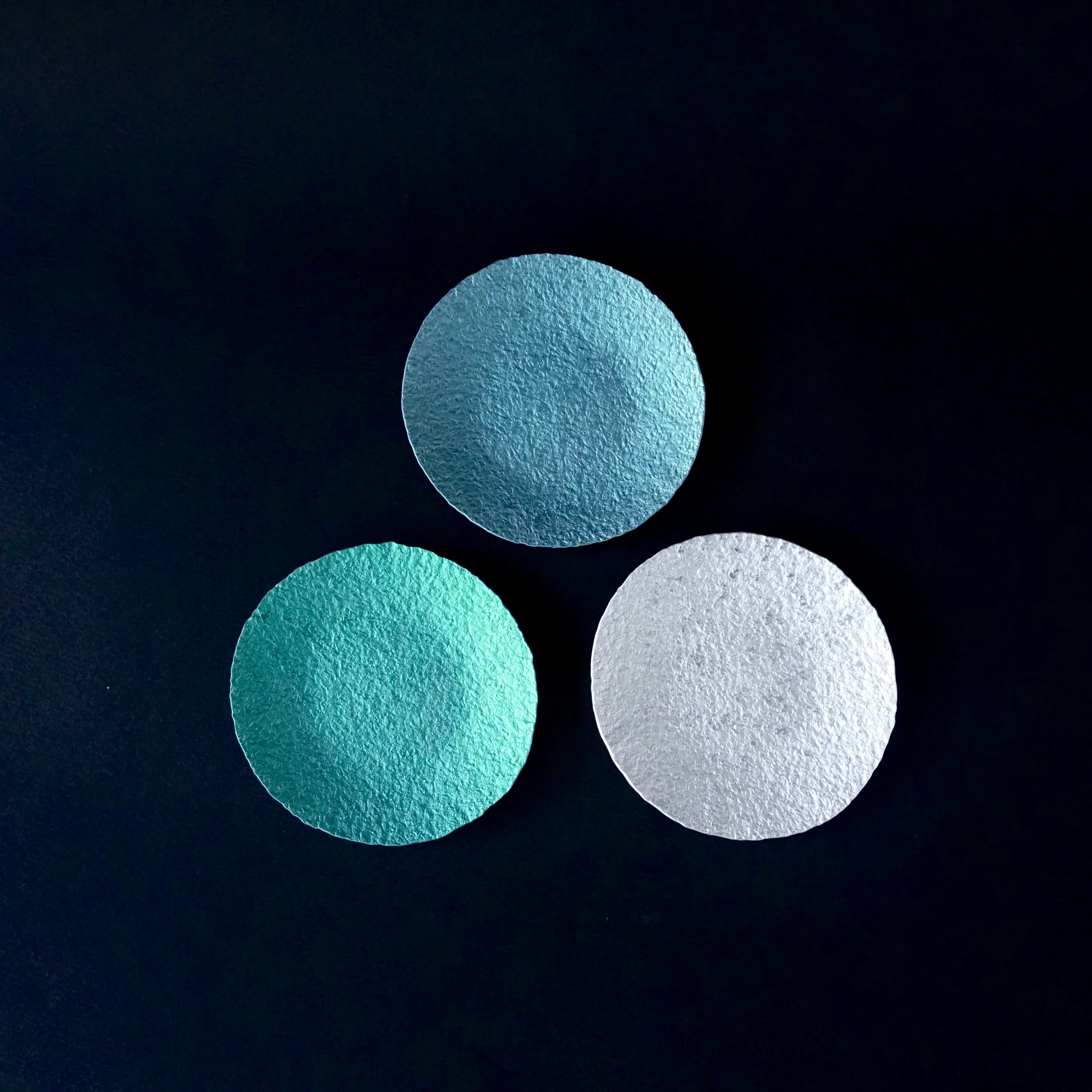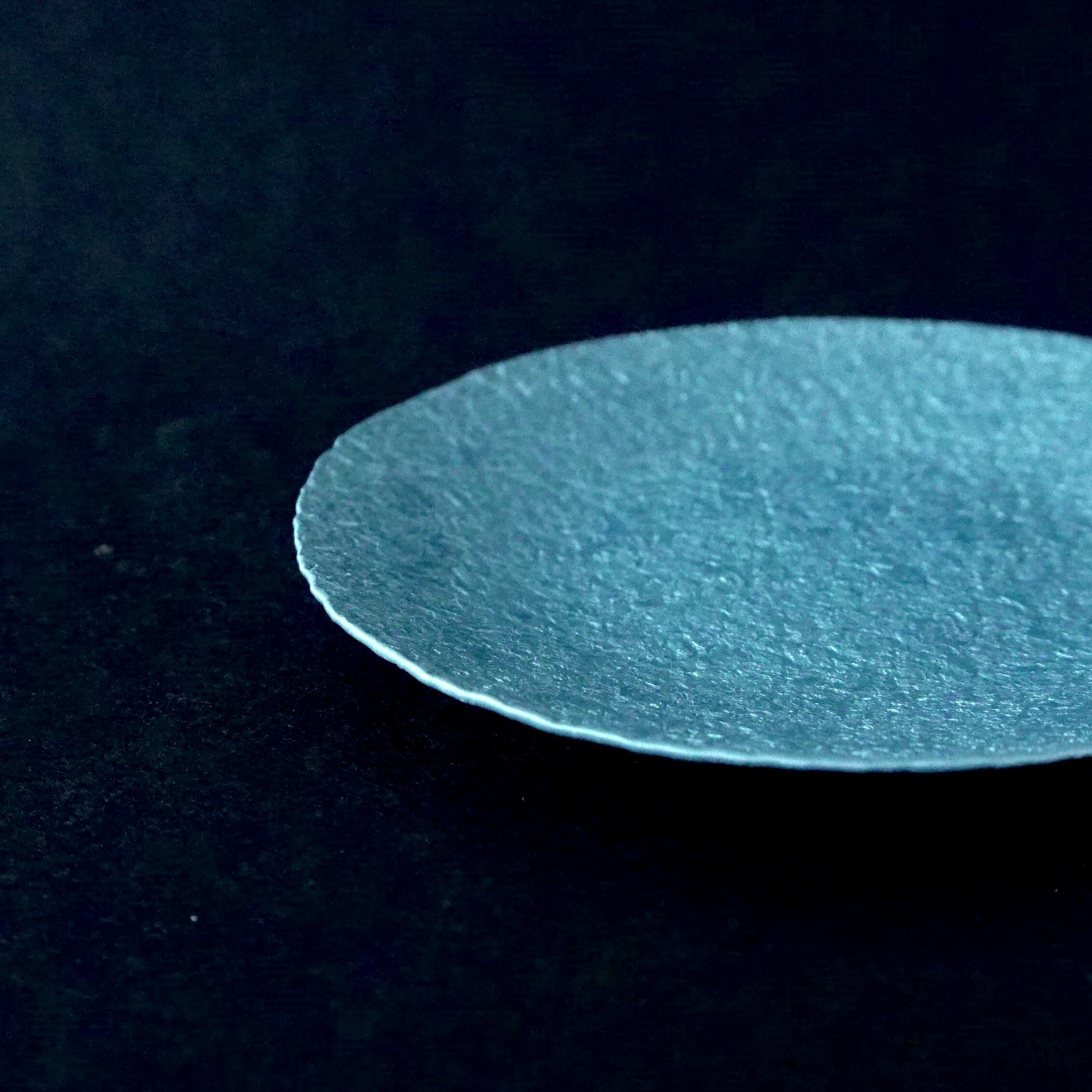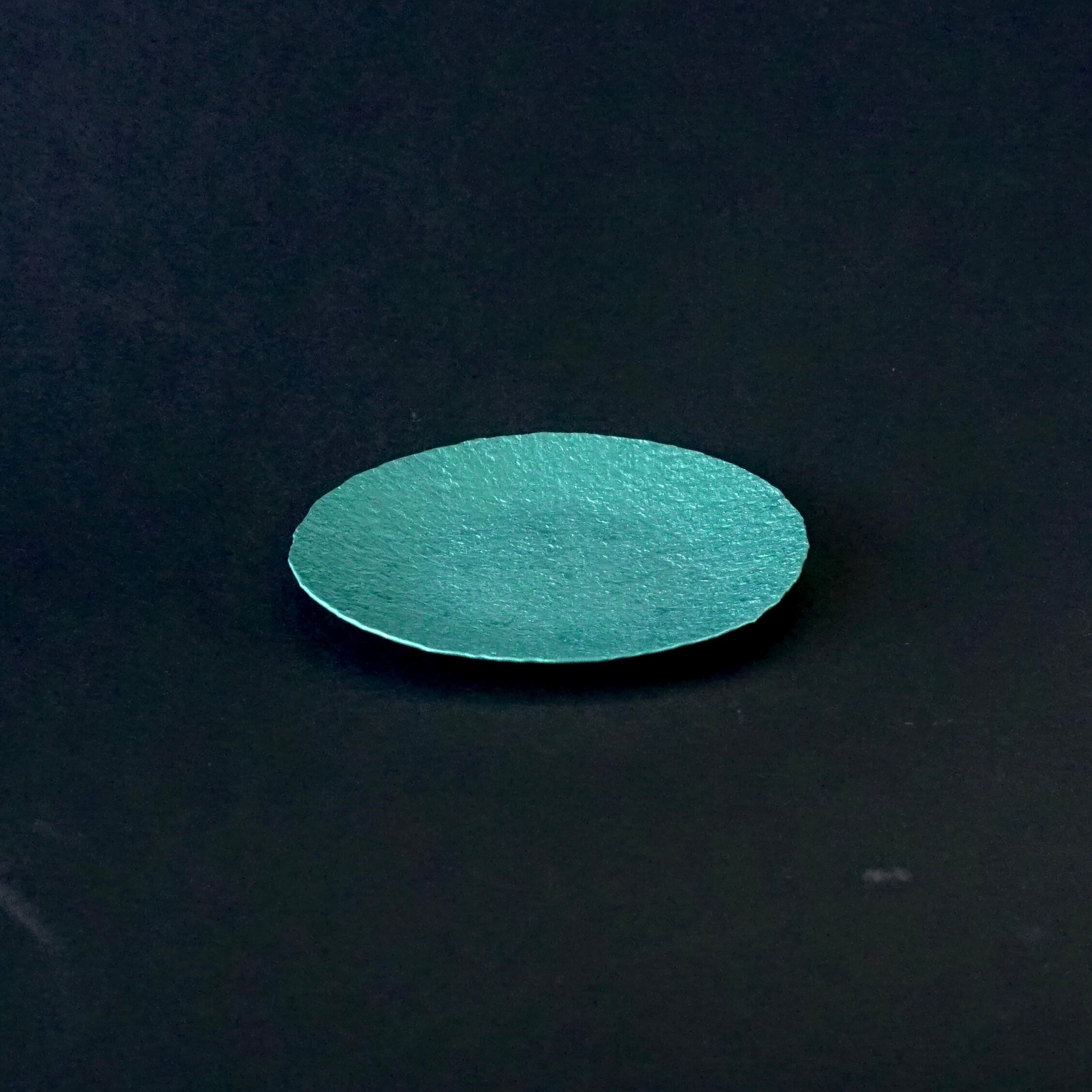 軽銀を金槌で叩き、草木染めをした小皿。