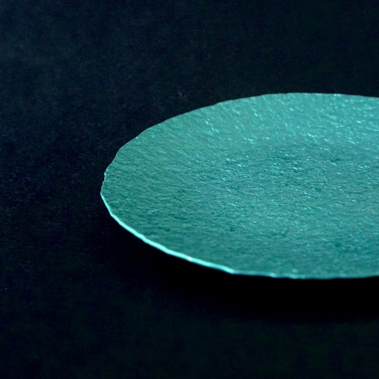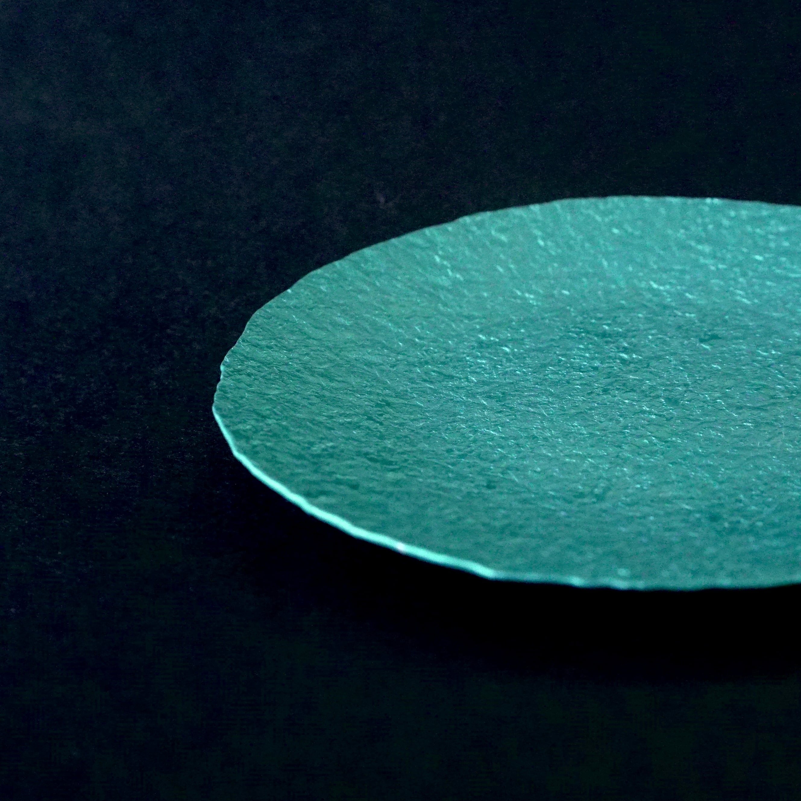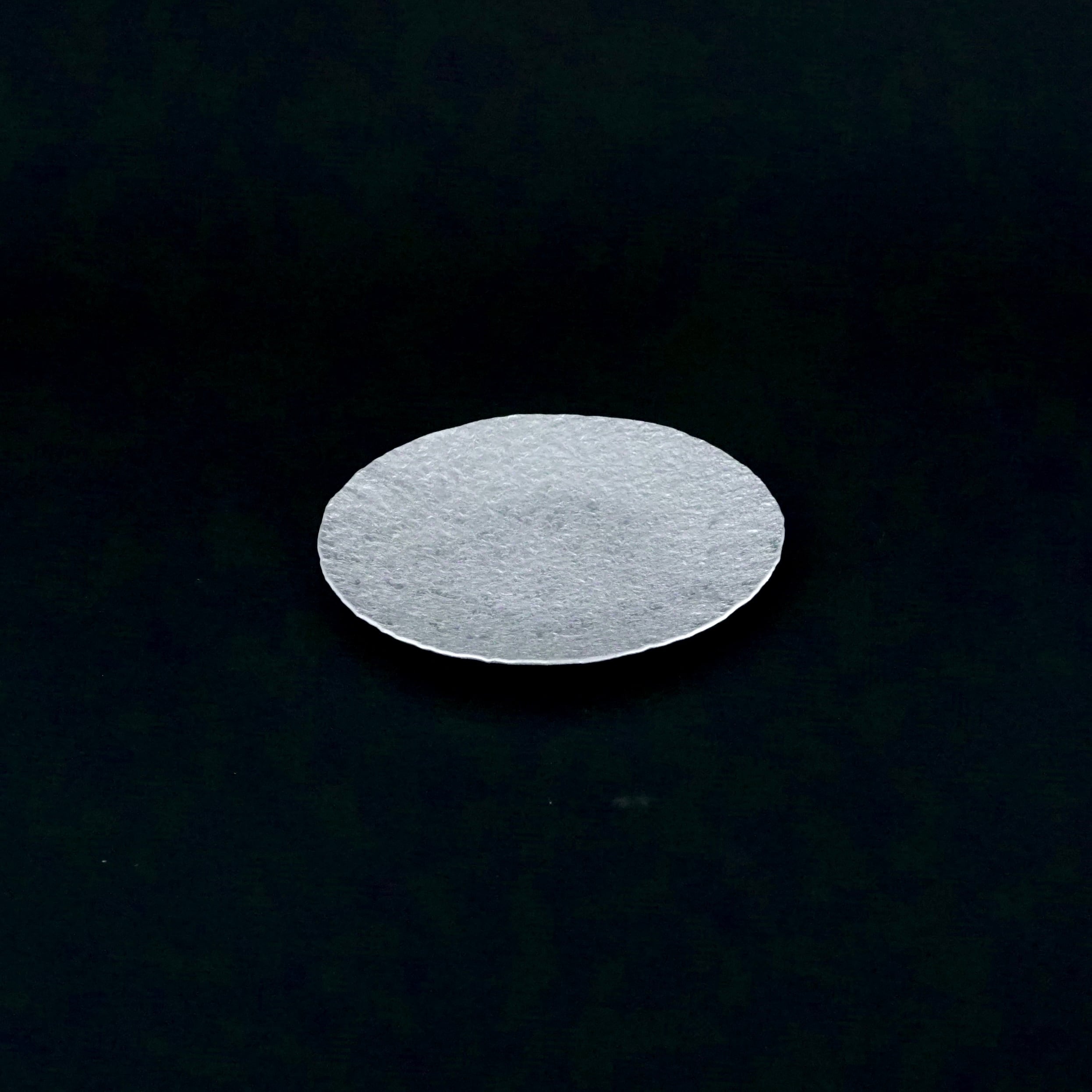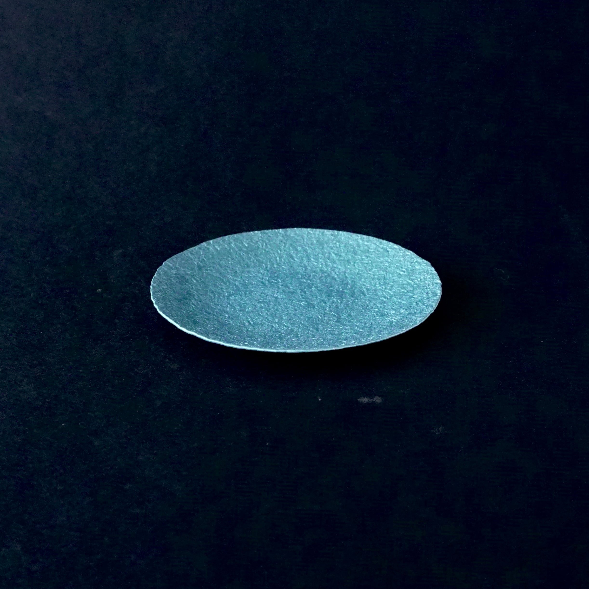 軽銀を金槌で叩き、草木染めをした小皿。